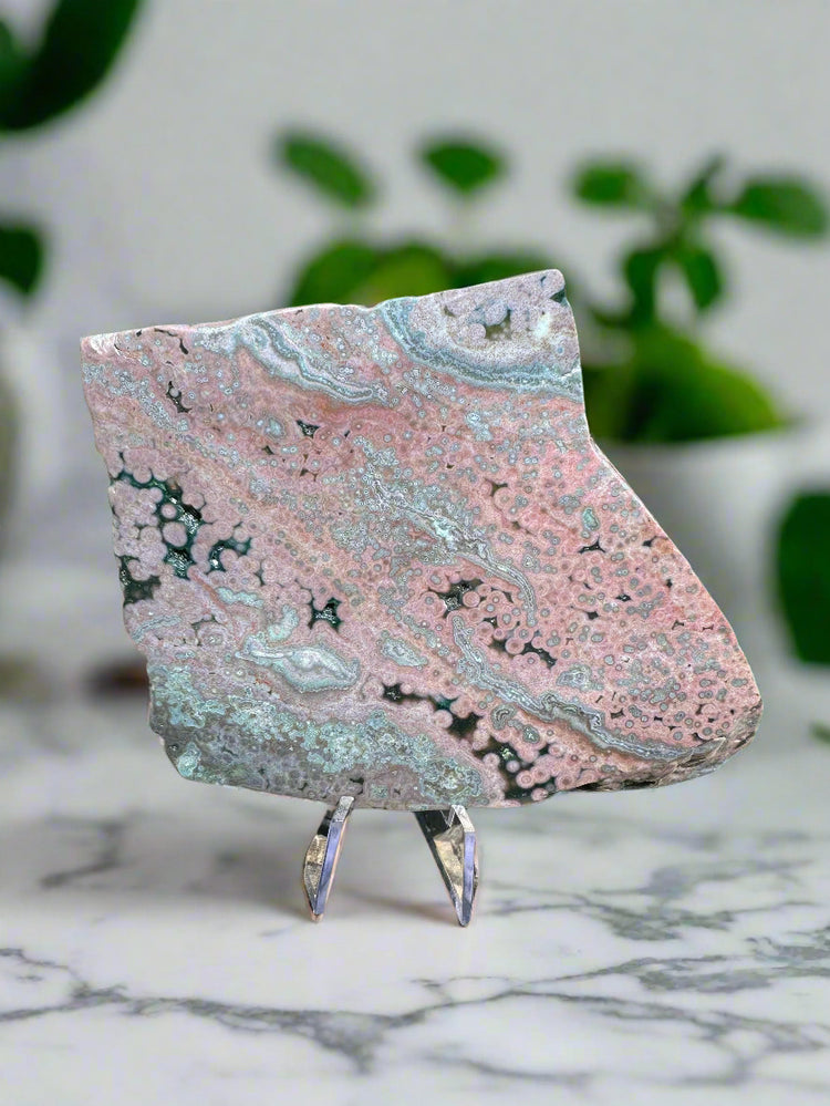 Discover the captivating beauty of the 8th Vein Ocean Jasper Slab #130, a unique piece showcasing mesmerizing patterns and rich colors. Perfect for collectors or as a striking centerpiece, this slab brings natural elegance and serene energy to any space. Its distinct veins and textures make it a one-of-a-kind treasure that elevates your surroundings with nature’s artistry. Add this stunning Ocean Jasper slab to your collection today and experience the timeless allure it offers.
