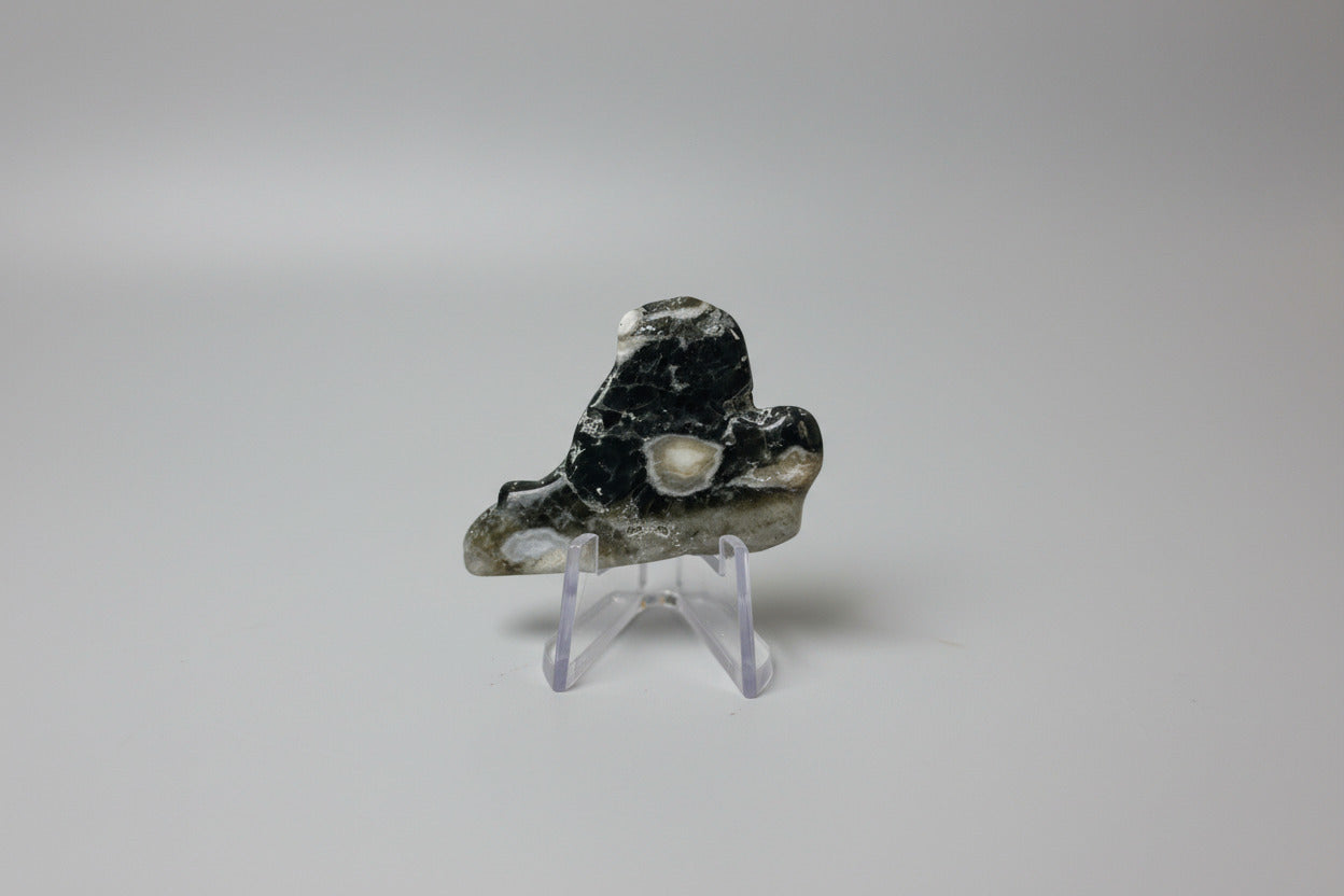 Discover the exquisite beauty of 6th Vein Ocean Jasper. This polished freeform stone, #28 in the collection, is a unique addition to any crystal or gemstone collection. With its captivating patterns and colors, this rare specimen is sure to elevate any space and bring harmony and balance to its surroundings.