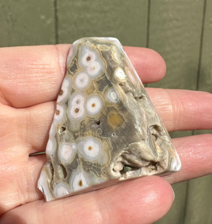 Elevate your crystal collection with our stunning 8th Vein Ocean Jasper Polished Free Form #14. This unique crystal features beautiful swirling patterns and a polished finish, making it a beautiful addition to any home. Let its calming energy and natural beauty bring joy and positive vibes to your space.