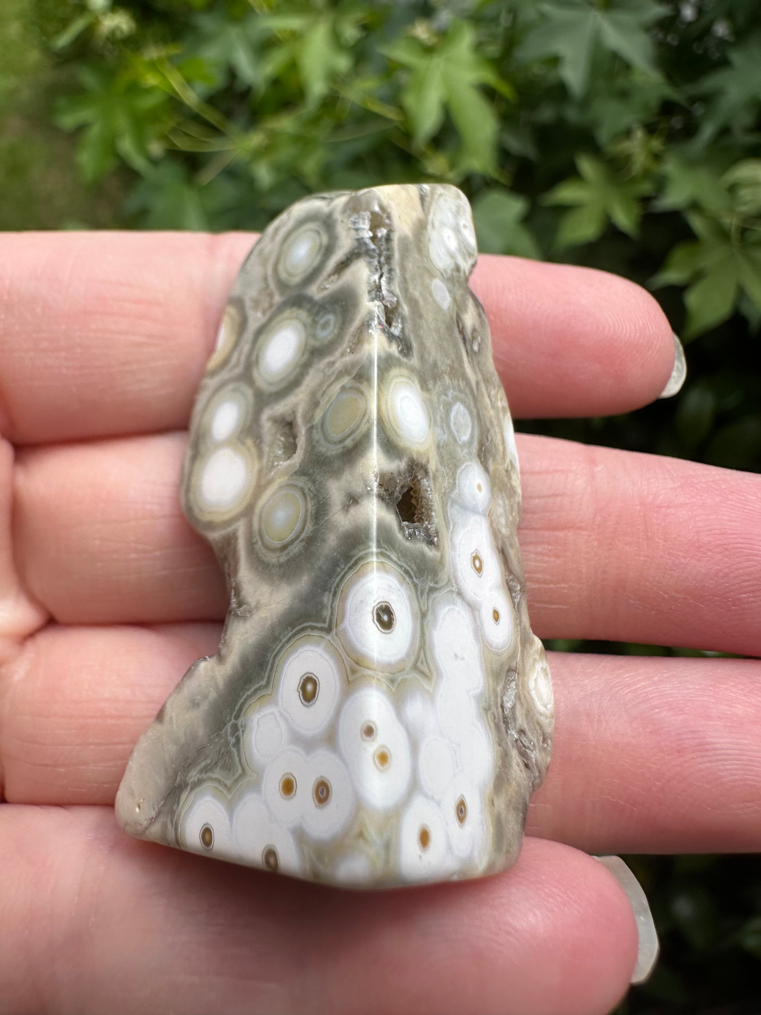 Welcome this beautiful 8th Vein Ocean Jasper Polished Free Form #32 into your collection. This special piece showcases the gentle, flowing patterns that make 8th vein jasper so beloved among crystal enthusiasts. The careful polishing process has brought out the stone's natural colors while preserving its unique free-form shape, allowing you to connect with its calming energy. Ocean Jasper is known for its nurturing properties, offering comfort during times of change and encouraging self-acceptance. Whether you're adding to your crystal family or beginning your journey, this one-of-a-kind specimen will bring a sense of peace and harmony to your space.