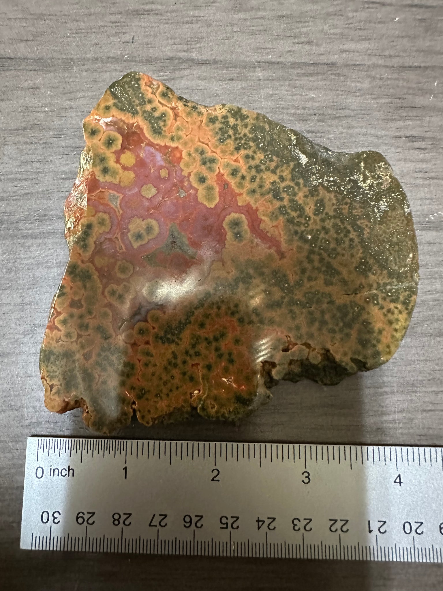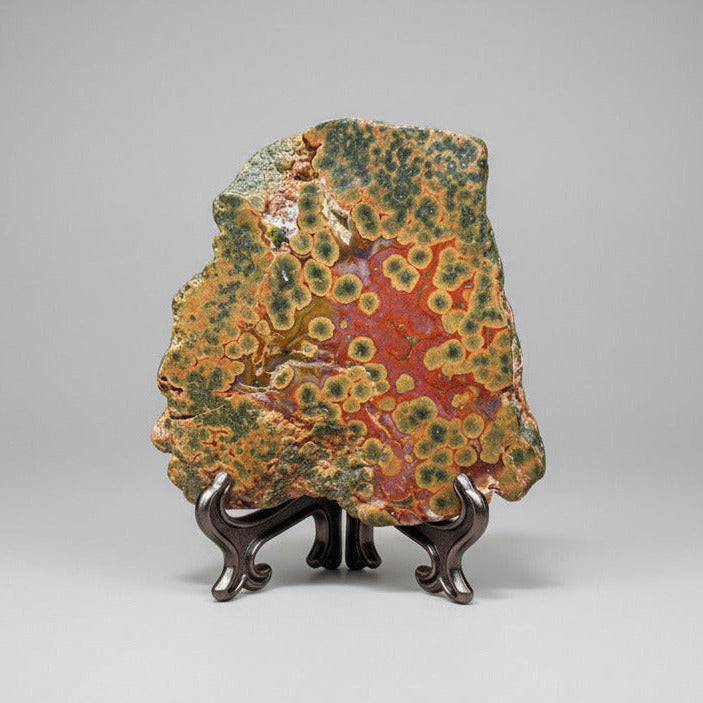 This 8th Vein Ocean Jasper Slab #105 showcases the intricate patterns and vibrant colors characteristic of premium ocean jasper. Its unique veining and polished surface make it an exceptional specimen for collectors and enthusiasts seeking both aesthetic appeal and geological significance. Ideal for display or incorporation into custom designs, this slab highlights the natural beauty and complexity of ocean jasper formations.