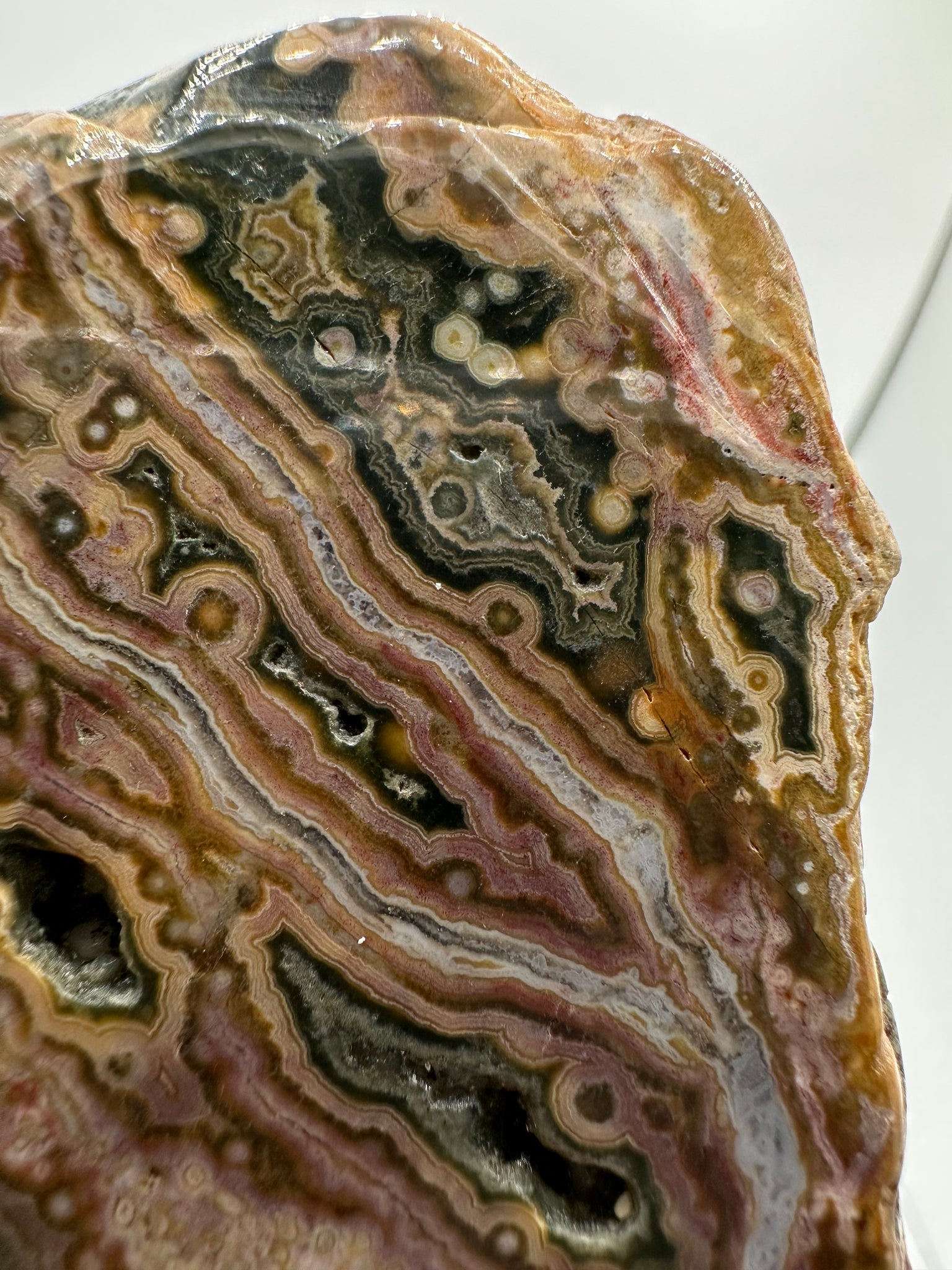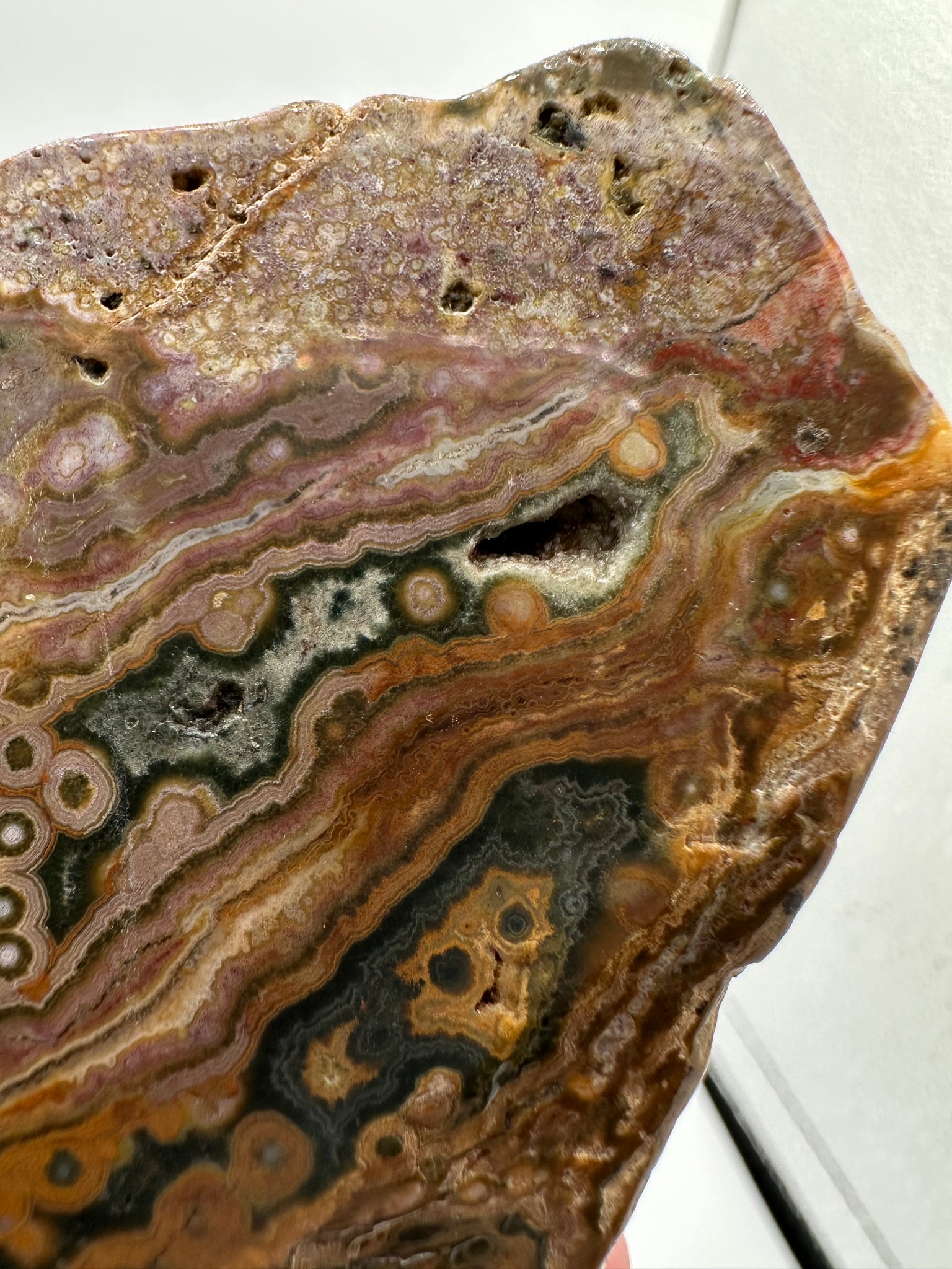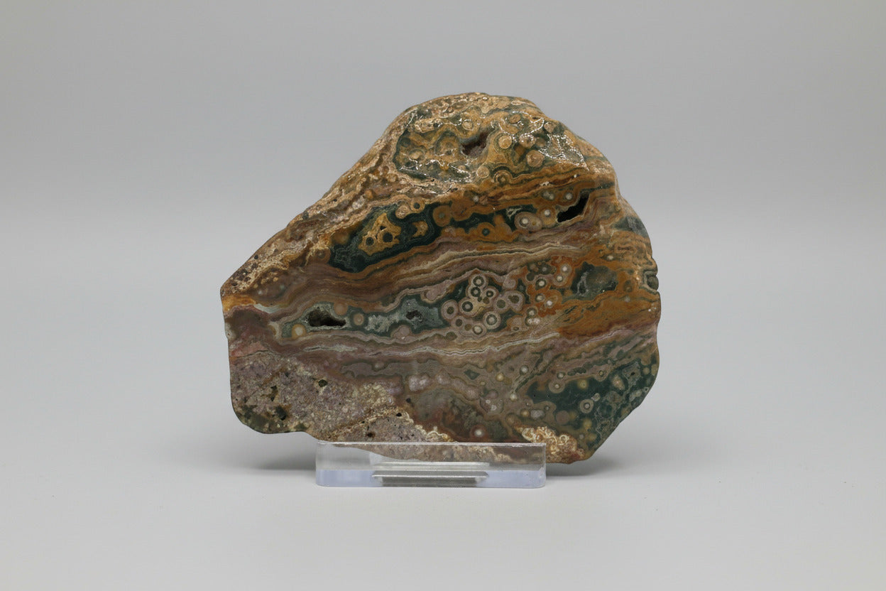 Discover the mesmerizing beauty of this 8th Vein Ocean Jasper Slab, a stunning natural specimen showcasing swirling patterns of soft greens, creams, and earth tones. Each piece is uniquely formed by nature, displaying the characteristic orbicular formations that make Ocean Jasper so prized by collectors and crystal enthusiasts. Perfect for display, jewelry making, or adding to your mineral collection. A truly one-of-a-kind treasure that brings natural elegance and grounding energy to any space.