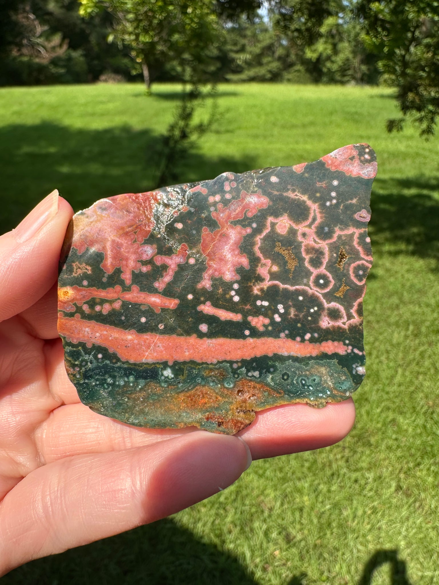Discover the captivating beauty of the 8th Vein Ocean Jasper Slab #114, featuring stunning natural patterns and vibrant colors unique to each piece. This polished slab is perfect for collectors and home decorators seeking a touch of natural elegance and tranquility. Its mesmerizing design makes it a standout addition to any space, offering both visual appeal and a connection to nature’s artistry. Elevate your collection with this exceptional Ocean Jasper slab today.