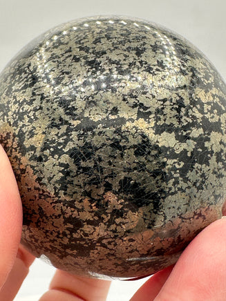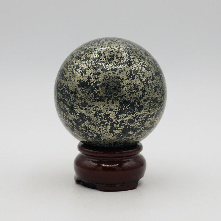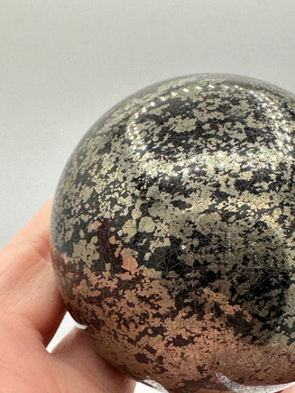 Elevate your decor with our sleek Black Pyrite Sphere! Measuring 62.08mm and adorned with intricate patterns, this unique piece adds a touch of elegance to any space. The perfect conversation starter, it also promotes grounding and protection. A must-have for crystal lovers and collectors.