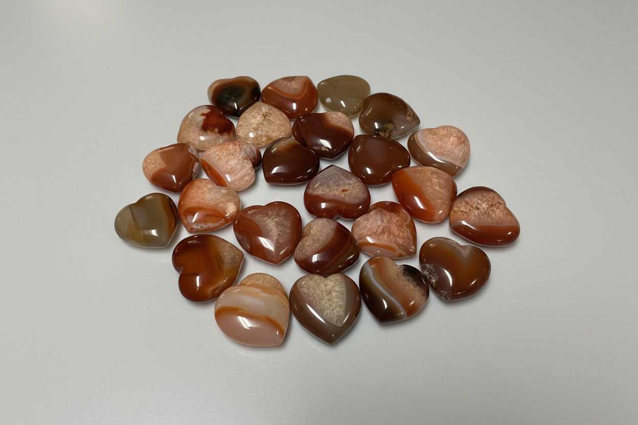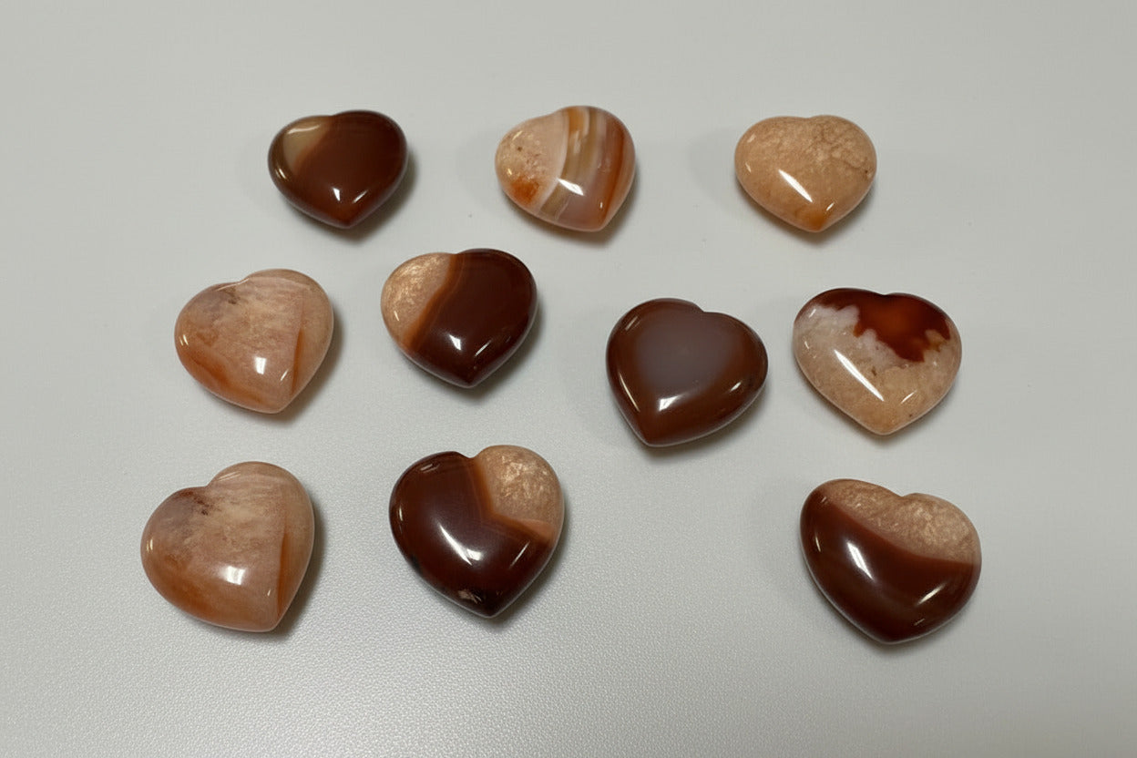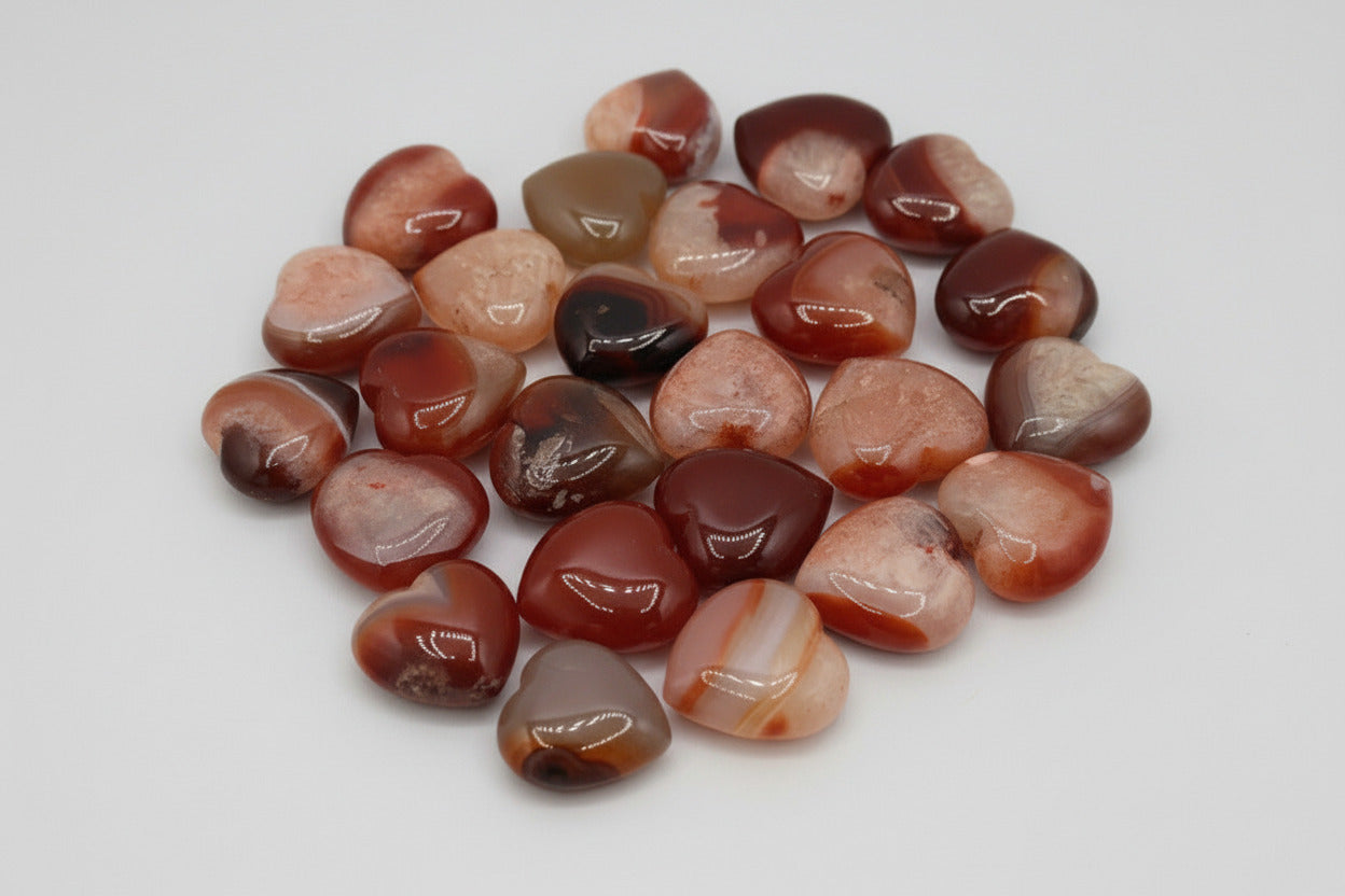 Embrace the warmth of passion with these stunning Carnelian Carved Hearts. Each piece showcases the rich, fiery hues of natural carnelian stone, hand-carved into a timeless heart shape that symbolizes love and vitality. Known as a stone of courage and creativity, carnelian energizes your spirit and ignites your inner fire. Perfect for collectors, crystal enthusiasts, or as a meaningful gift, these carved hearts make beautiful additions to any space. Whether displayed on a shelf, carried as a pocket stone, or used in your spiritual practice, these radiant gems bring both aesthetic beauty and positive energy into your life.