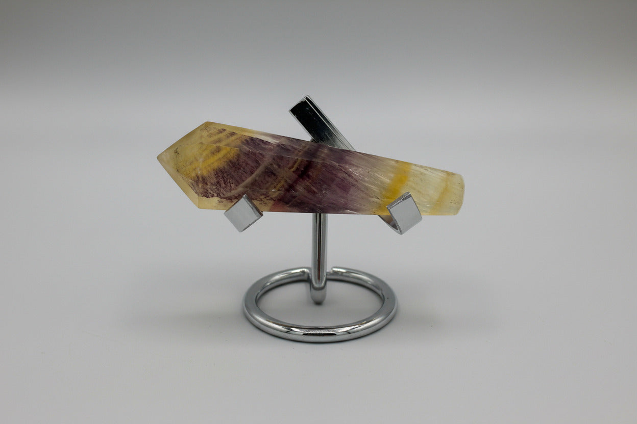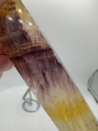 Expertly carved into a scepter form, this piece highlights both the artistry of the carving and the natural beauty of fluorite. The polished finish enhances its color banding and clarity, while the internal fractures create stunning rainbow flashes that add depth and magic to the piece.