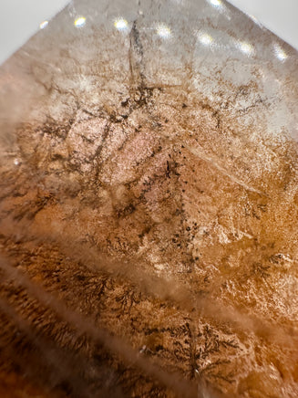 Carved into a tower with a pointed tip, this piece draws the eye upward while showcasing its internal details from every angle. The polished surface enhances clarity and highlights the dendritic inclusions, making it ideal for display, collection, or energy work.