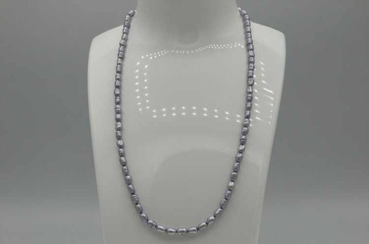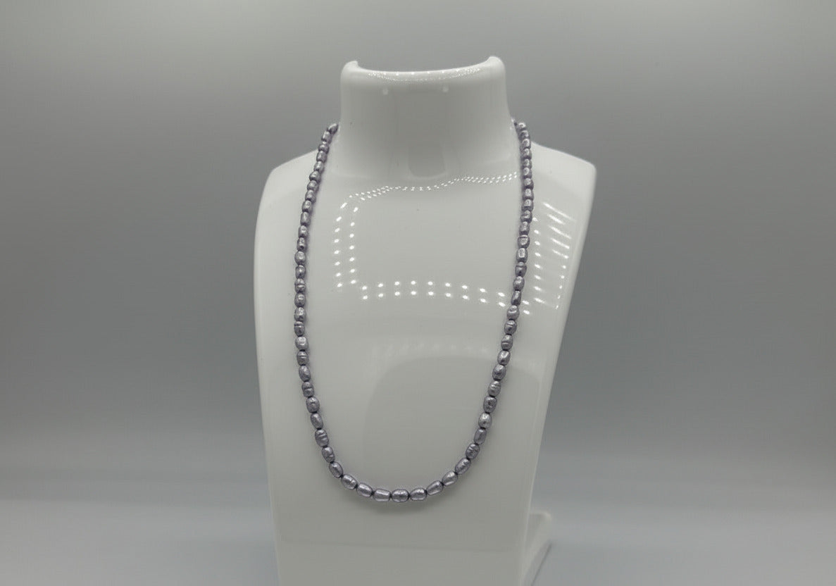 Soft, elegant, and beautifully luminous, this natural Freshwater Pearl strand features a delicate lavender hue enhanced through dyeing, giving it a consistent and eye-catching color. Each pearl displays gentle luster and organic shape, adding to its charm and uniqueness.