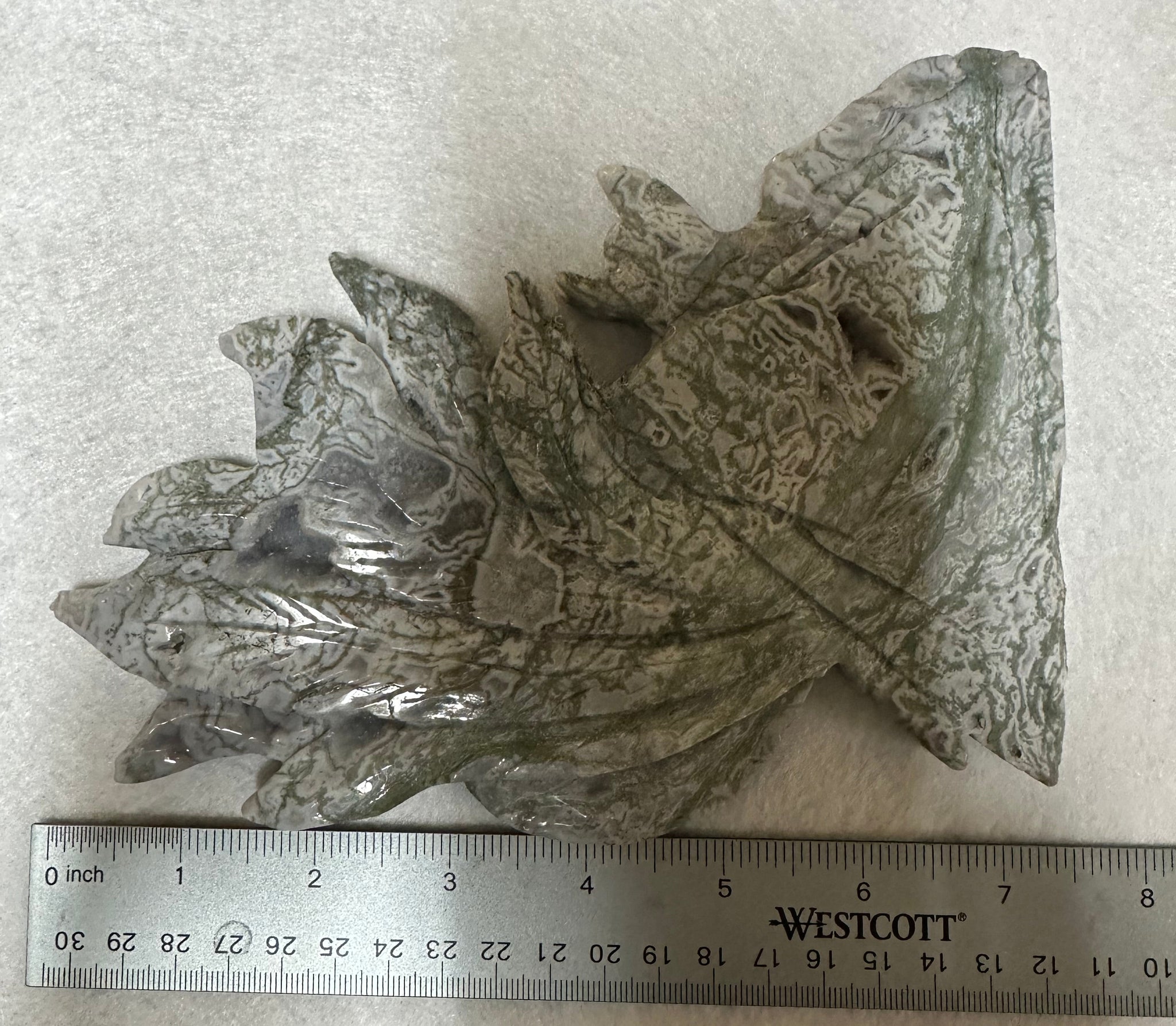 Elevate your collection with this stunning Moss Agate Nine-Tailed Fox Carving adorned with sparkling druzy crystals. This exceptional piece combines the grounding energy of moss agate's verdant patterns with the radiant shimmer of natural druzy formations, creating a truly captivating visual experience. The nine-tailed fox, a powerful emblem of wisdom and spiritual awakening, is rendered with remarkable detail and artistry. The druzy accents catch light beautifully, adding dimension and magic to this already mesmerizing carving. Ideal for collectors, meditation practitioners, or anyone seeking a distinctive talisman that merges natural beauty with profound symbolism, this piece invites transformation and wonder into your sacred space.