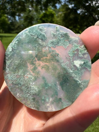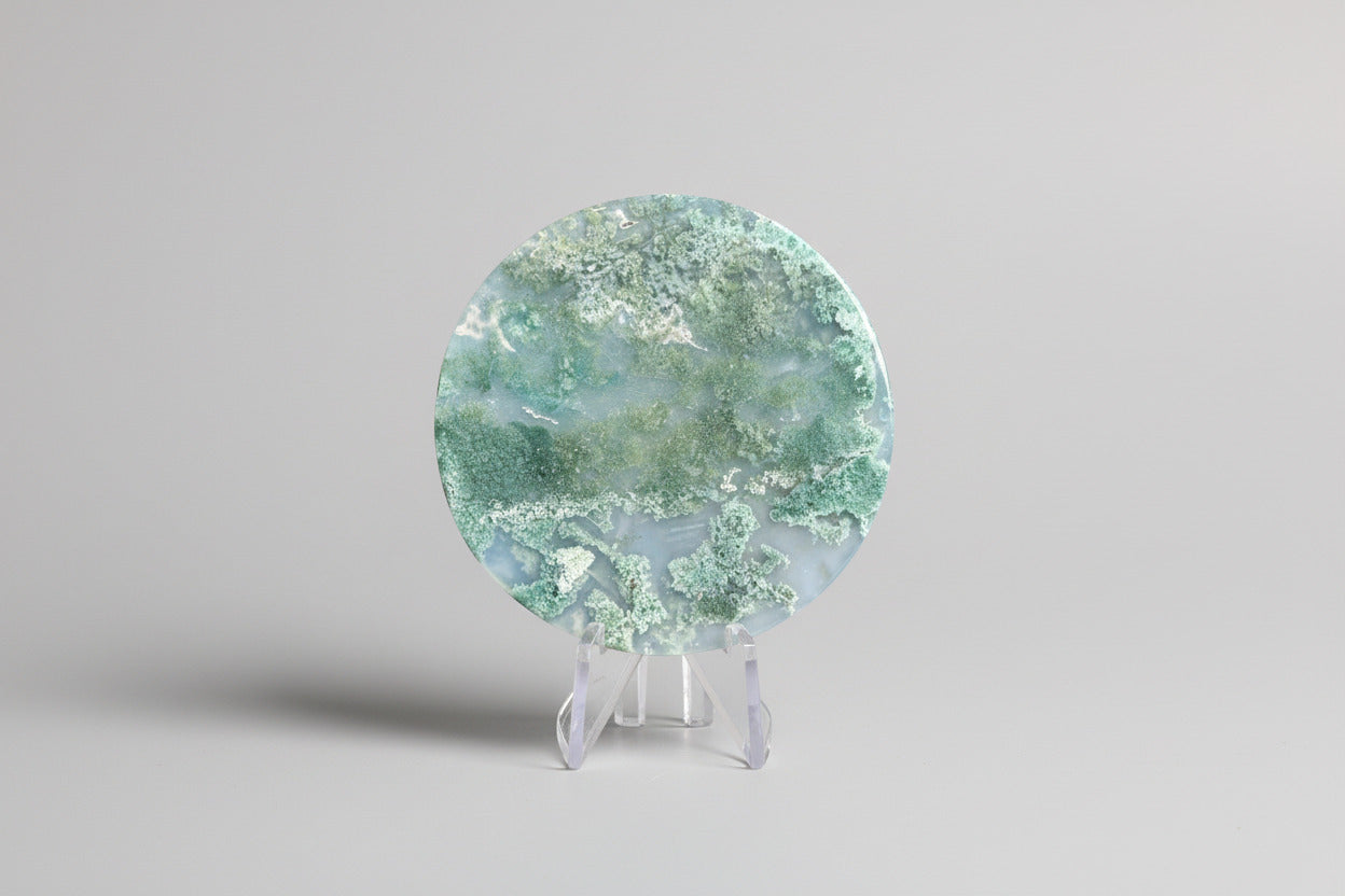 Discover the natural beauty of this Moss Agate Polished Round Slice #6. Its smooth, polished surface highlights the unique green and white patterns that resemble delicate moss, making it a perfect piece for collectors or those seeking a calming, nature-inspired accent. Ideal for display or as a thoughtful gift, this slice brings a touch of tranquility and earth’s artistry into any space.