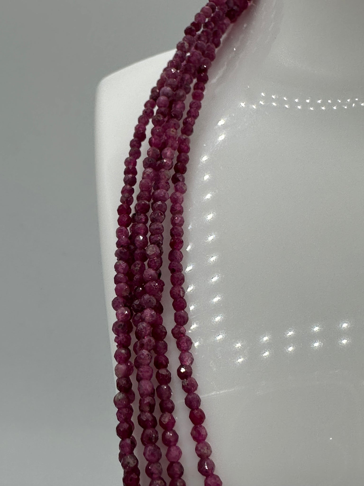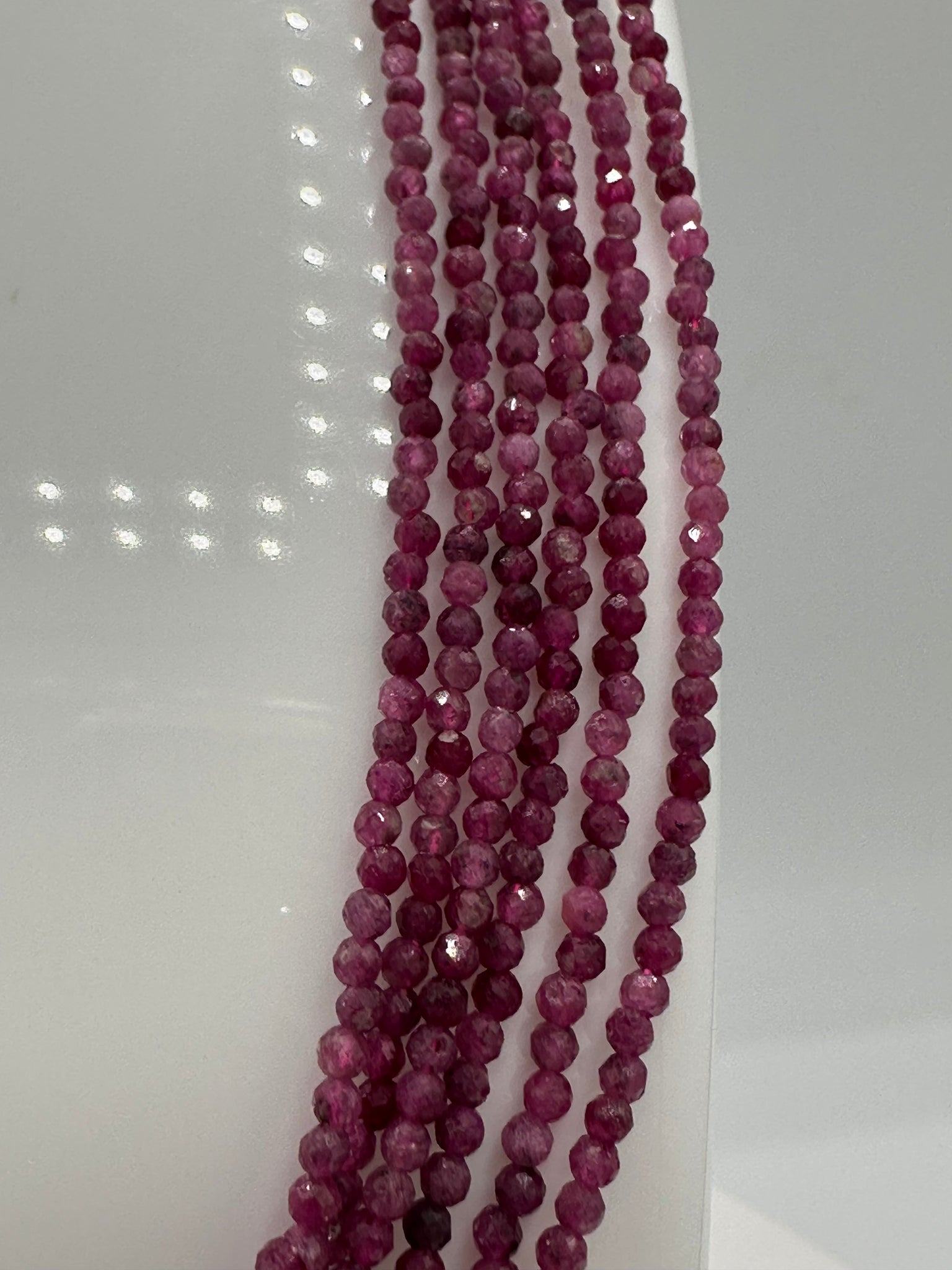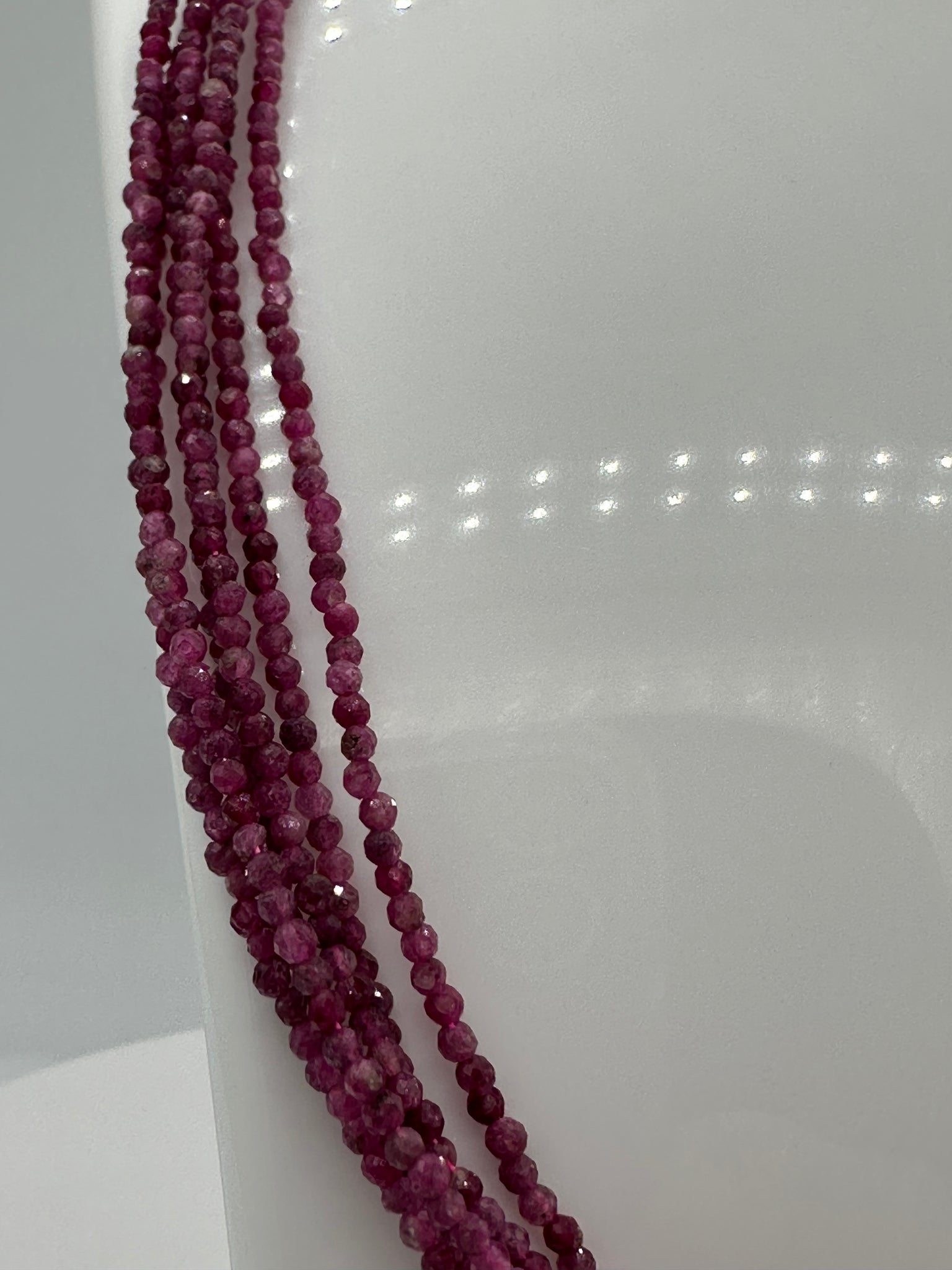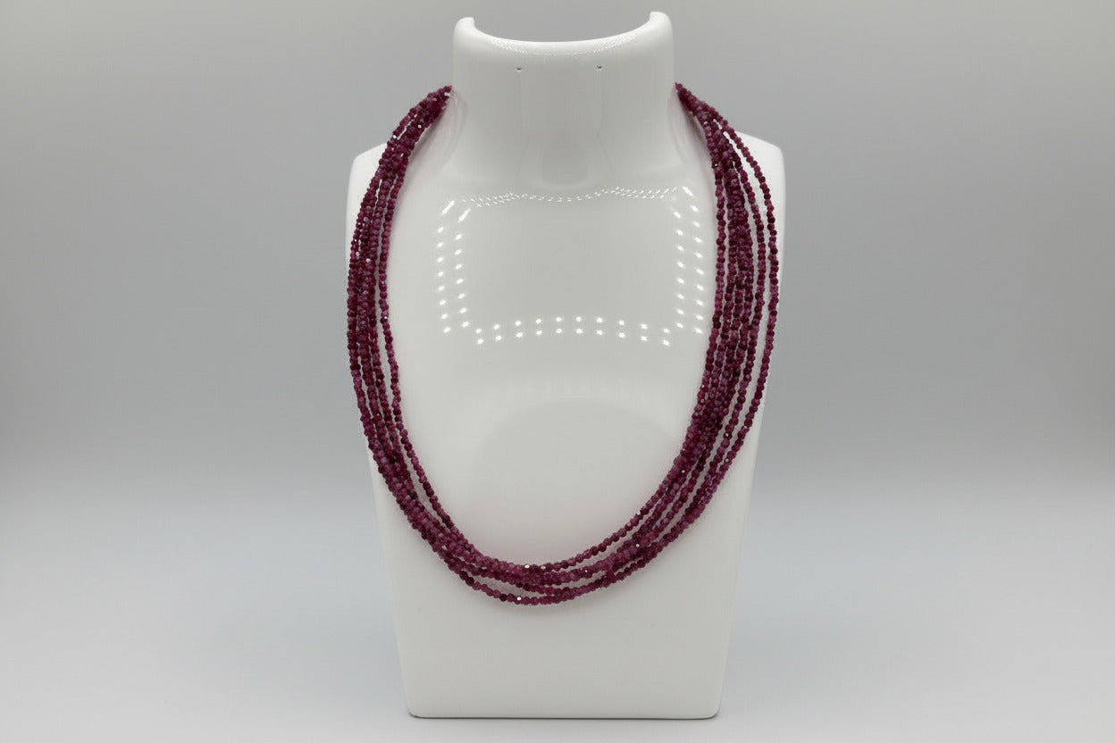 Elevate your everyday style with this stunning Natural 2mm Faceted Ruby Necklace. Each piece features genuine ruby beads cut with precise facets that catch the light beautifully, creating a radiant sparkle. The necklace measures 16 inches with a convenient 2-inch extension, allowing you to customize the fit to your preference. Crafted with durable stainless steel clasps and extension hardware, this necklace combines timeless elegance with lasting quality. Perfect for layering or wearing solo, it's a versatile addition to any jewelry collection.