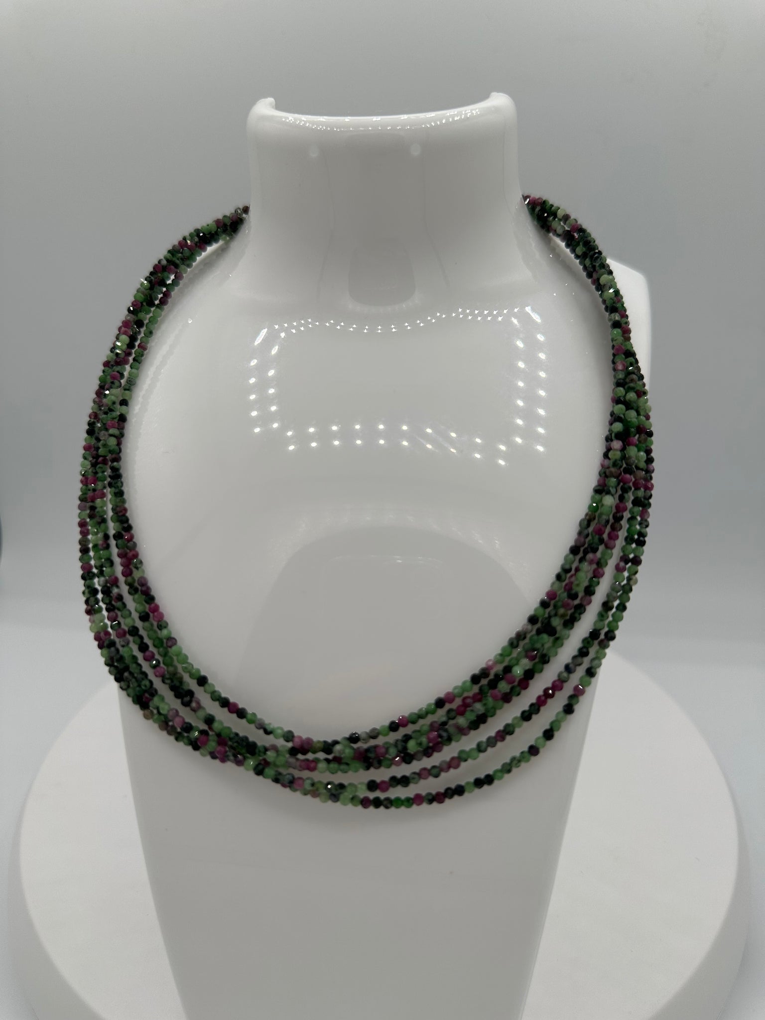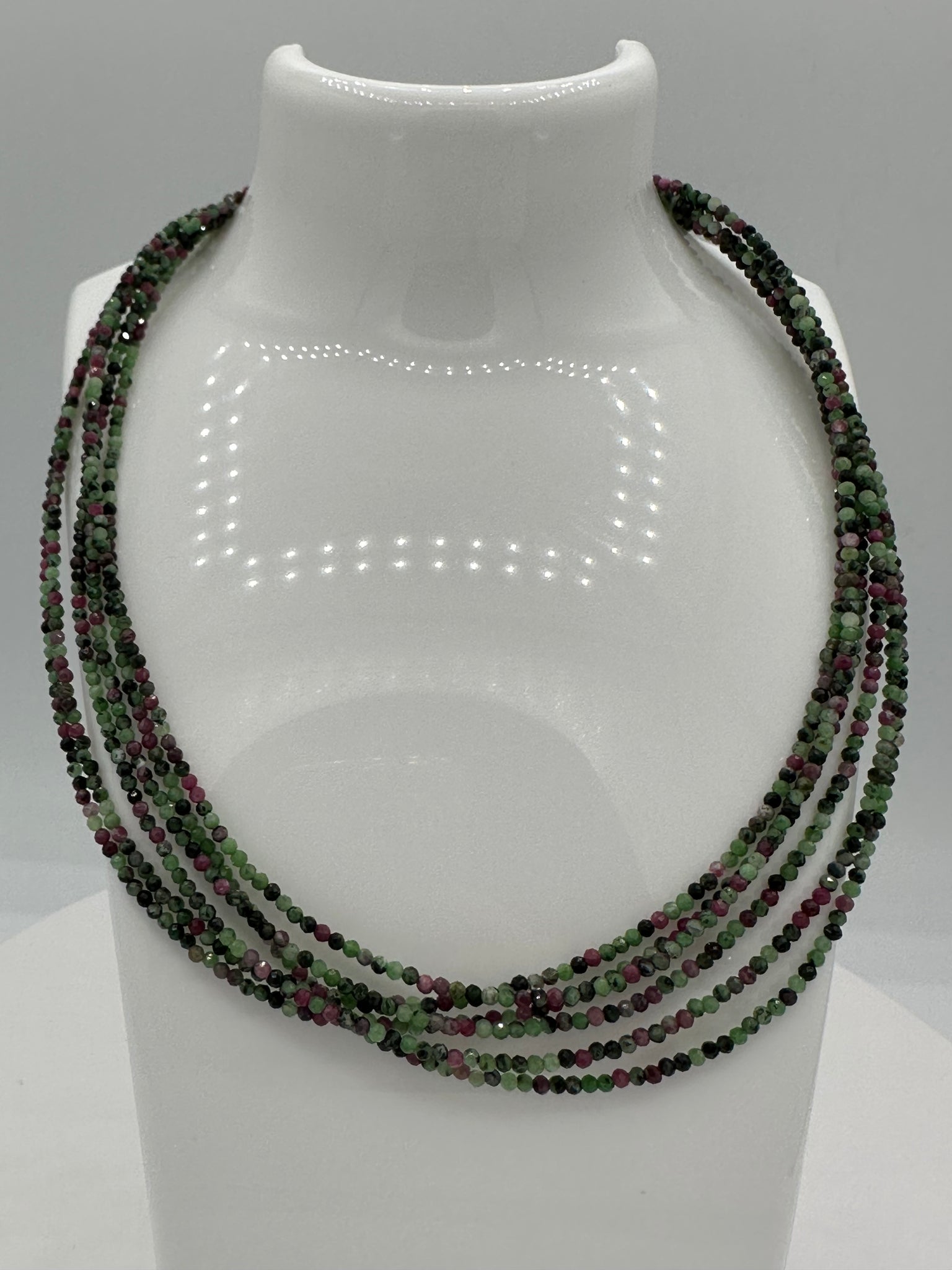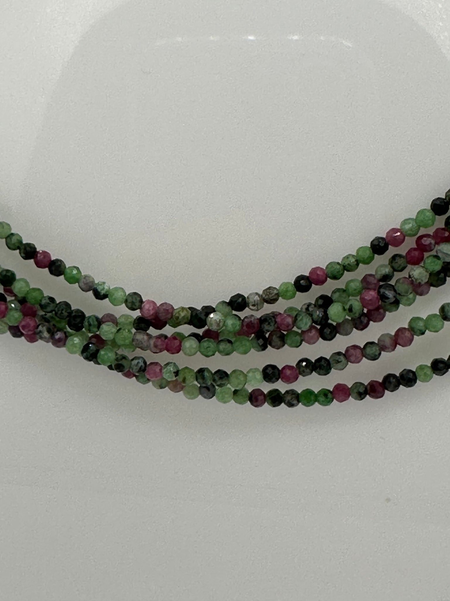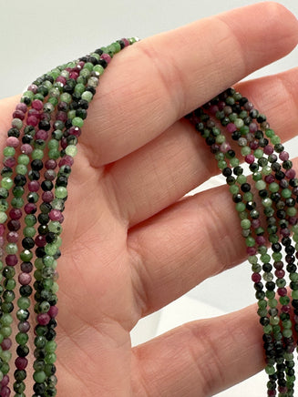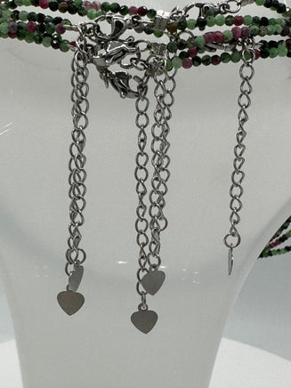 Natural 2mm Ruby Zoisite Faceted Necklaces showcase the striking beauty of precisely cut gemstones in rich, deep tones. This 16-inch necklace features a convenient 2-inch extension, allowing you to customize the fit for maximum comfort. Crafted with durable stainless steel clasps and extension hardware, it's built to last through everyday wear. Ruby Zoisite is prized for its unique color combination and natural energy, making this piece both a stunning accessory and a meaningful addition to any collection. Wear it solo for impact or layer it with other pieces for a personalized look.