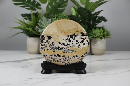 Picture Jasper is nature's canvas—each slab tells a unique geological story through its distinctive earthy patterns and warm, natural hues. This stunning specimen showcases the rich browns, tans, and cream tones characteristic of authentic Picture Jasper, making it a captivating focal point for any collection. The included stand displays your slab beautifully, allowing you to appreciate the intricate details and natural artistry from every angle. Perfect for mineral enthusiasts, collectors, and those seeking a meaningful piece of Earth's natural beauty to enhance their space. Might be visible glue, which does not take away from the beauty.