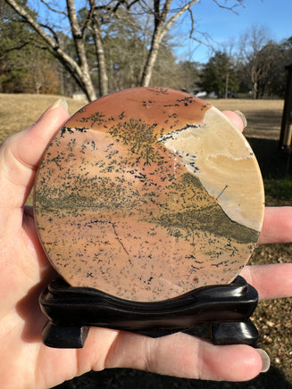 Picture Jasper is nature's canvas—each slab tells a unique geological story through its distinctive earthy patterns and warm, natural hues. This stunning specimen showcases the rich browns, tans, and cream tones characteristic of authentic Picture Jasper, making it a captivating focal point for any collection. The included stand displays your slab beautifully, allowing you to appreciate the intricate details and natural artistry from every angle. Perfect for mineral enthusiasts, collectors, and those seeking a meaningful piece of Earth's natural beauty to enhance their space. Might be visible glue, which does not take away from the beauty.