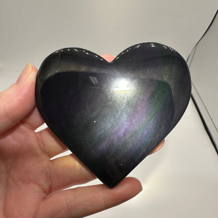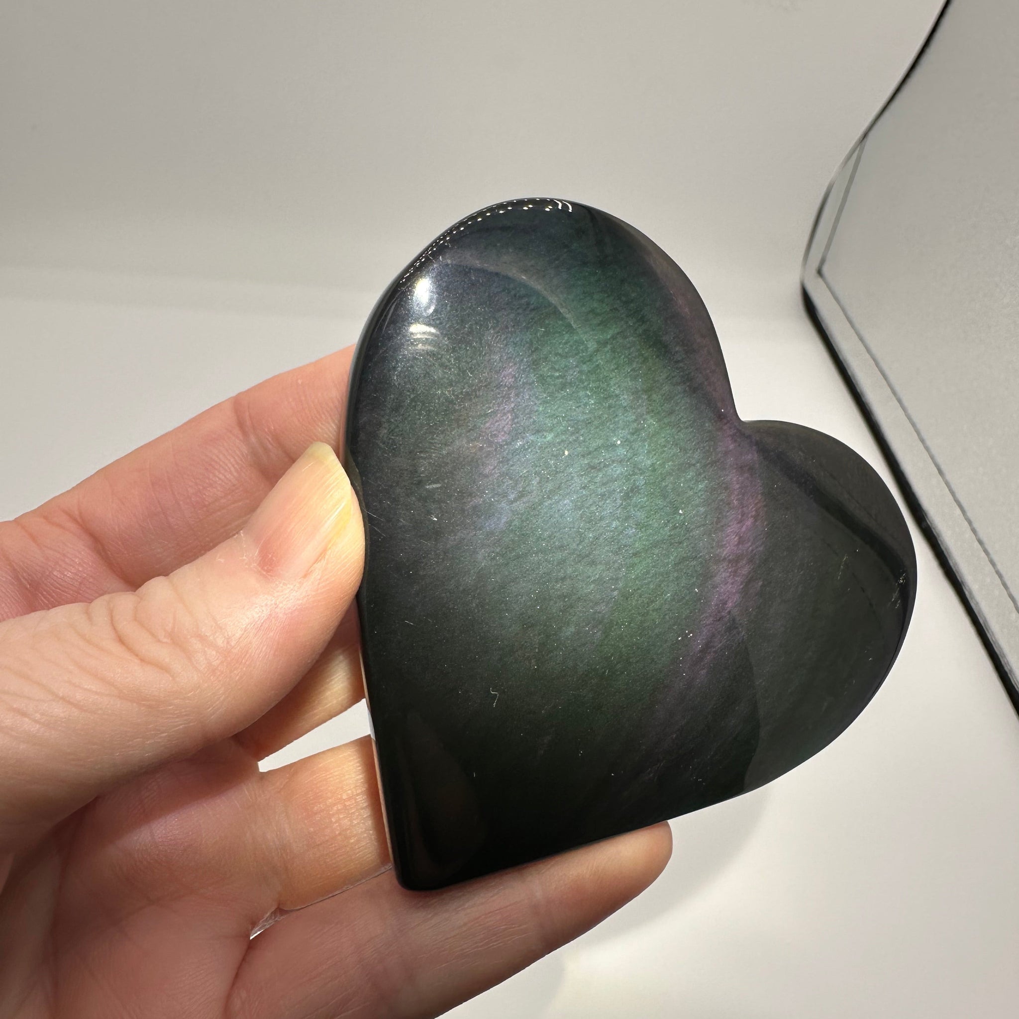 Discover the mesmerizing beauty of this Rainbow Sheen Obsidian Heart, a stunning natural gemstone that captures light with iridescent flashes of gold, green, and violet. Each piece is uniquely formed, showcasing the raw elegance of volcanic glass polished into a graceful heart shape. Perfect for collectors, crystal enthusiasts, or anyone seeking a meaningful decorative accent, this obsidian heart radiates protective energy while adding sophisticated natural beauty to any space. A truly one-of-a-kind treasure that celebrates nature's artistry.