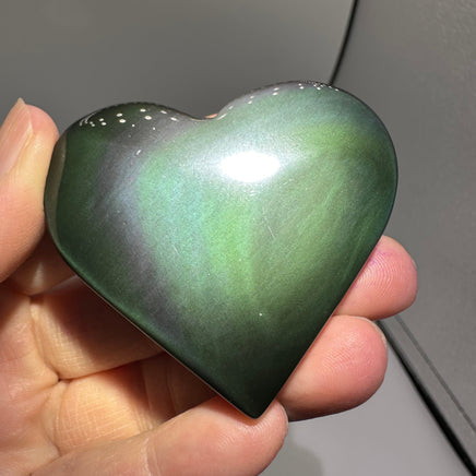 Discover the mesmerizing beauty of this Rainbow Sheen Obsidian Heart, a stunning natural gemstone that captures light with iridescent flashes of gold, green, and violet. Each piece is uniquely formed, showcasing the raw elegance of volcanic glass polished into a graceful heart shape. Perfect for collectors, crystal enthusiasts, or anyone seeking a meaningful decorative accent, this obsidian heart radiates protective energy while adding sophisticated natural beauty to any space. A truly one-of-a-kind treasure that celebrates nature's artistry.