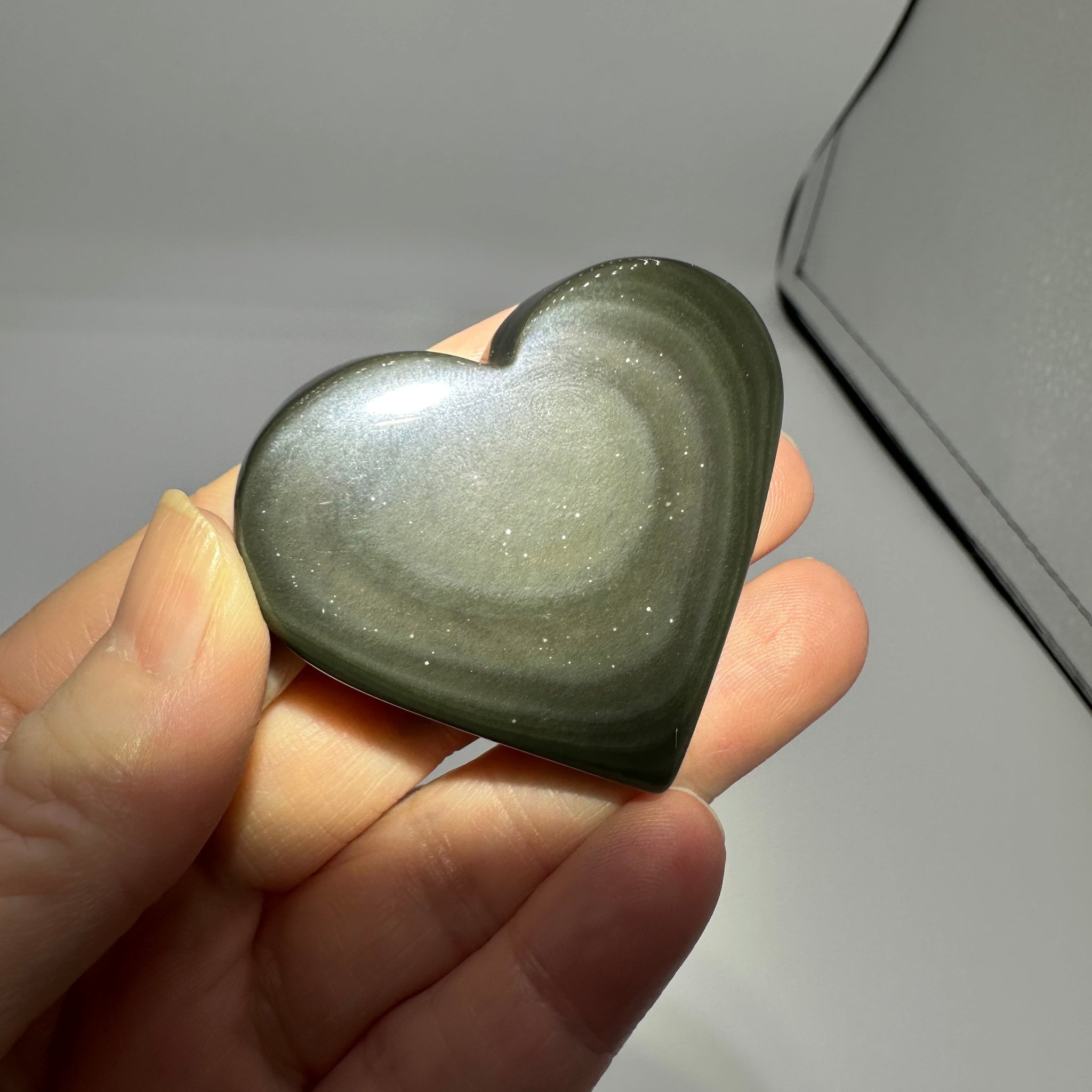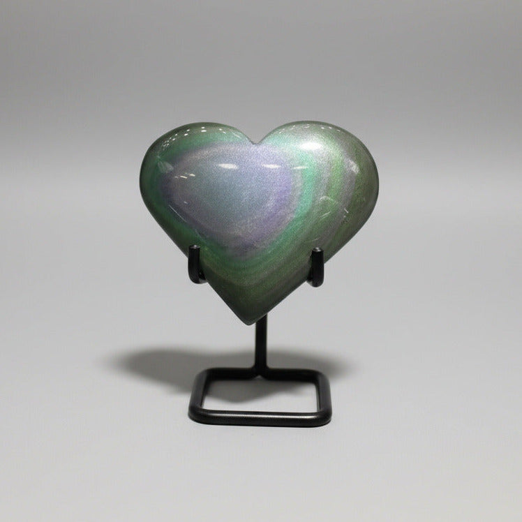 Discover the mesmerizing beauty of this Rainbow Sheen Obsidian Heart, a stunning natural gemstone that captures light with iridescent flashes of gold, green, and violet. Each piece is uniquely formed, showcasing the raw elegance of volcanic glass polished into a graceful heart shape. Perfect for collectors, crystal enthusiasts, or anyone seeking a meaningful decorative accent, this obsidian heart radiates protective energy while adding sophisticated natural beauty to any space. A truly one-of-a-kind treasure that celebrates nature's artistry.