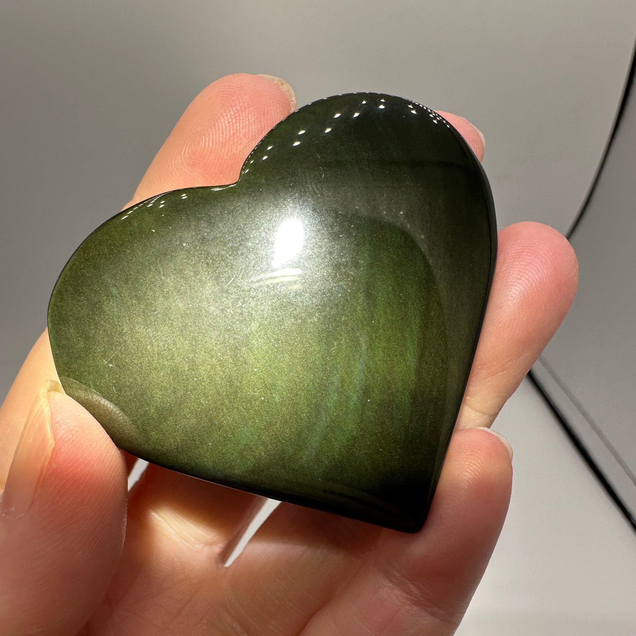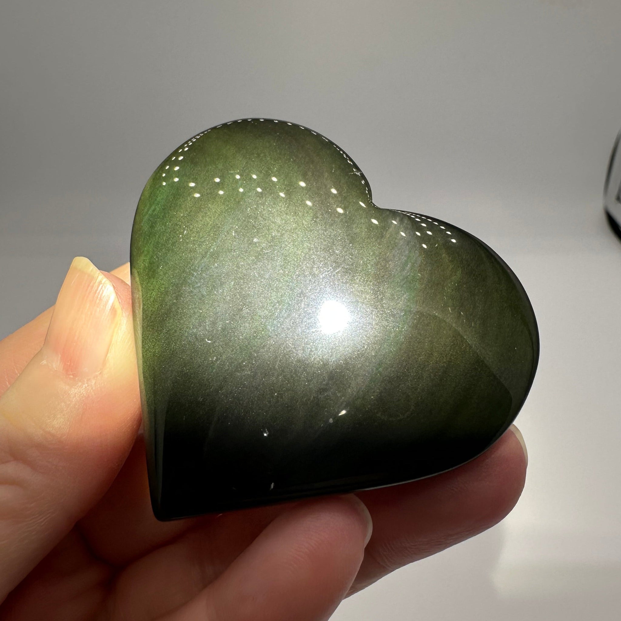 Discover the mesmerizing beauty of this Rainbow Sheen Obsidian Heart, a stunning natural gemstone that captures light with iridescent flashes of gold, green, and violet. Each piece is uniquely formed, showcasing the raw elegance of volcanic glass polished into a graceful heart shape. Perfect for collectors, crystal enthusiasts, or anyone seeking a meaningful decorative accent, this obsidian heart radiates protective energy while adding sophisticated natural beauty to any space. A truly one-of-a-kind treasure that celebrates nature's artistry.