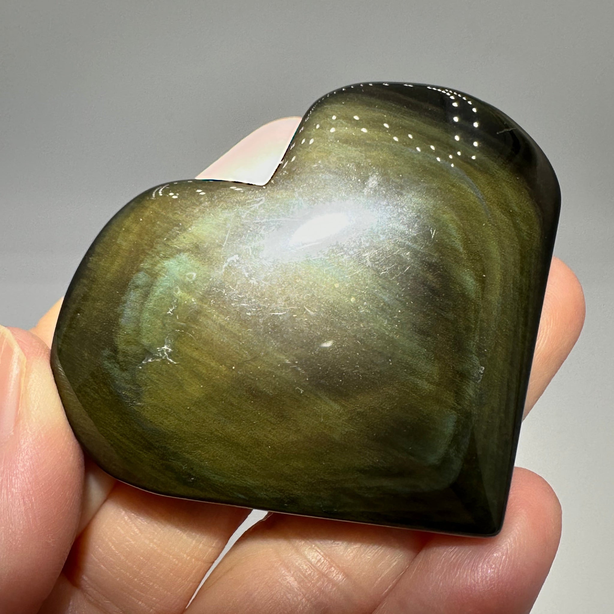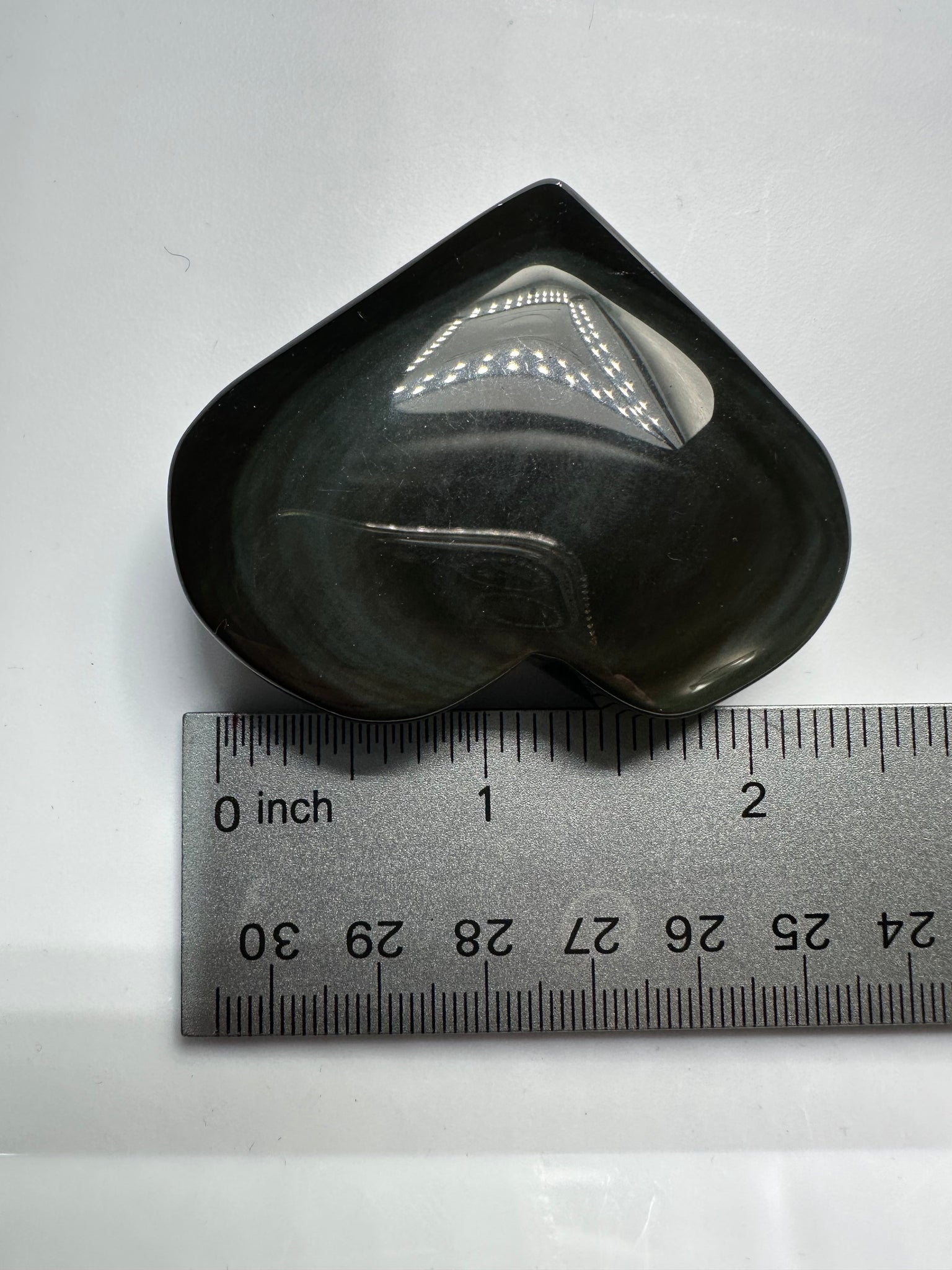 Discover the mesmerizing beauty of this Rainbow Sheen Obsidian Heart, a stunning natural gemstone that captures light with iridescent flashes of gold, green, and violet. Each piece is uniquely formed, showcasing the raw elegance of volcanic glass polished into a graceful heart shape. Perfect for collectors, crystal enthusiasts, or anyone seeking a meaningful decorative accent, this obsidian heart radiates protective energy while adding sophisticated natural beauty to any space. A truly one-of-a-kind treasure that celebrates nature's artistry.
