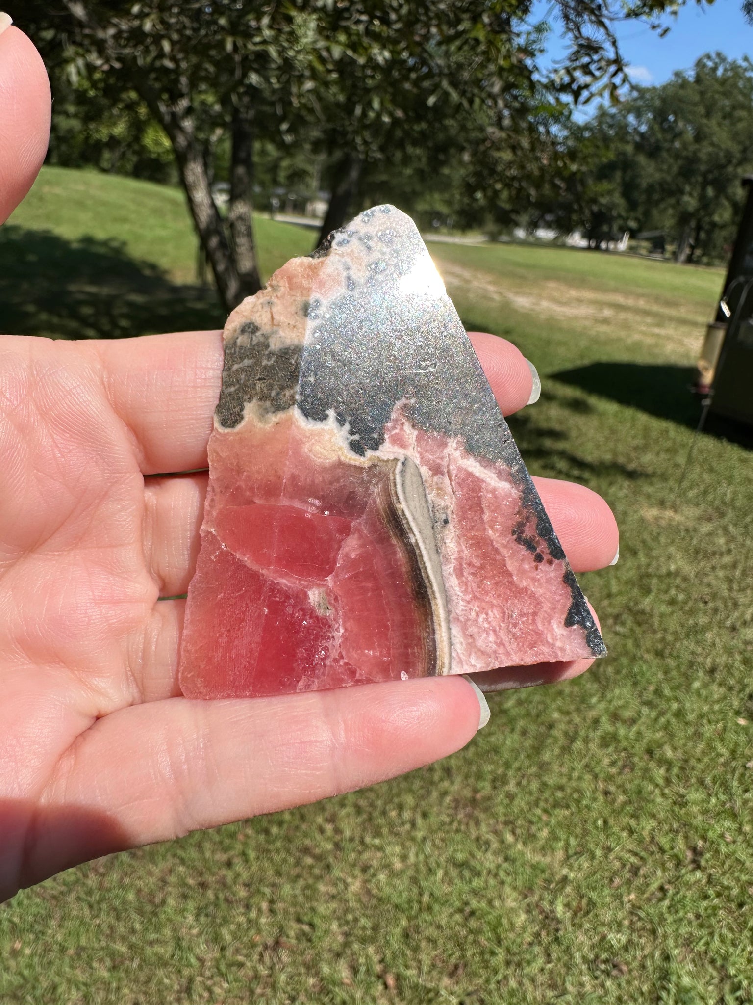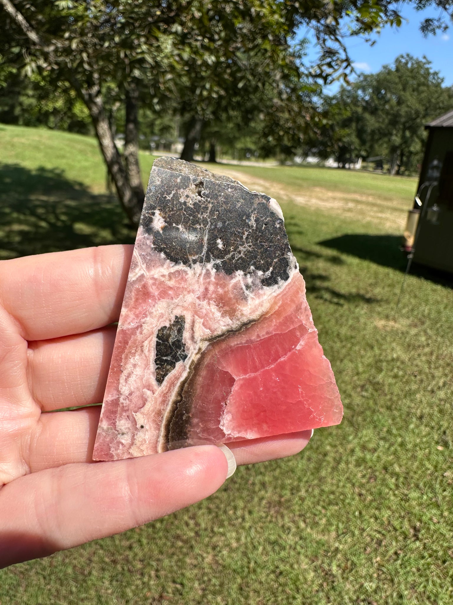 Discover the captivating beauty of this Rhodochrosite Slab, featuring rich pink hues and unique natural banding. This slab is perfect for collectors, decorators, or anyone seeking to add a touch of elegance and positive energy to their space. Its smooth surface makes it ideal for display or use in creative projects, bringing both visual appeal and the soothing qualities associated with this remarkable mineral. Elevate your collection today with this stunning piece.
