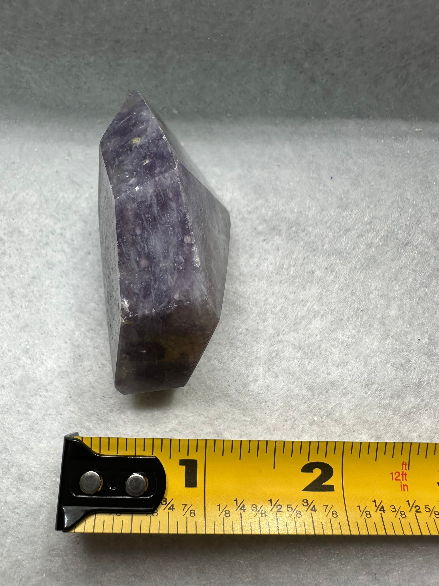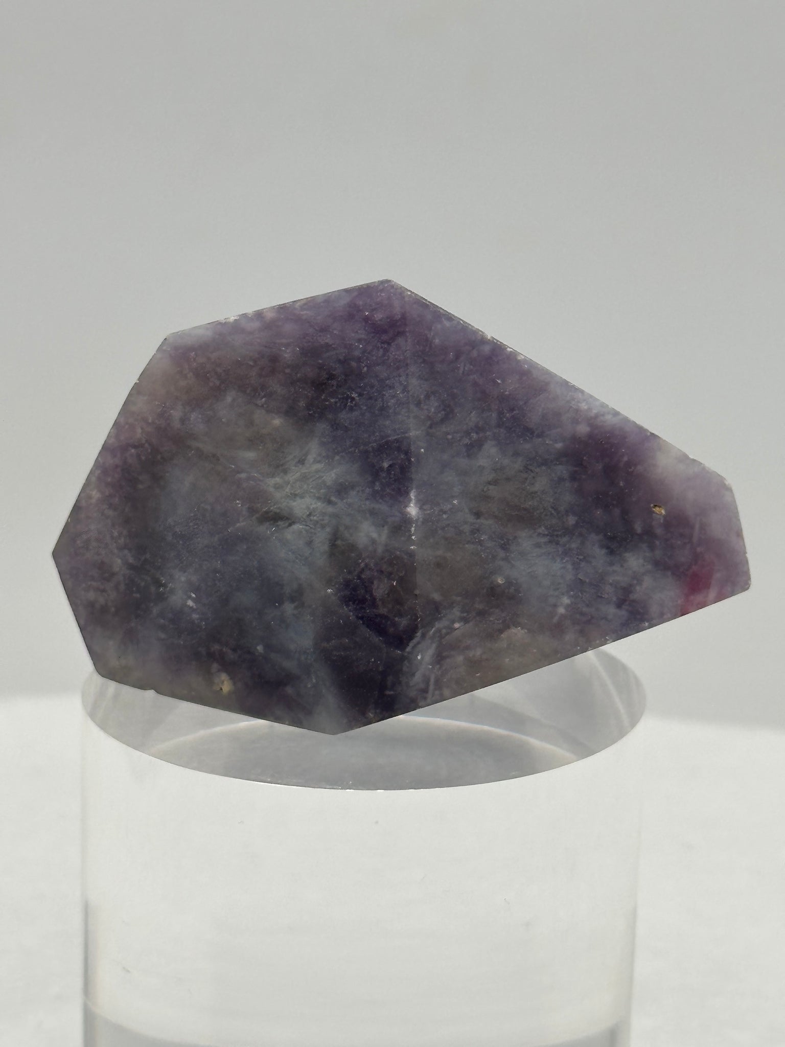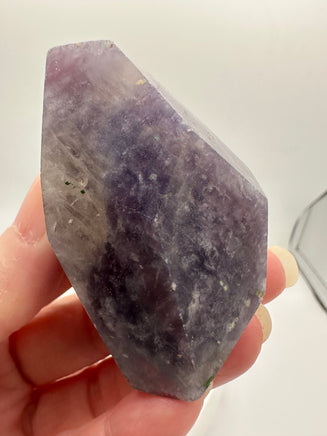 - Subtle mica shimmer from lepidolite