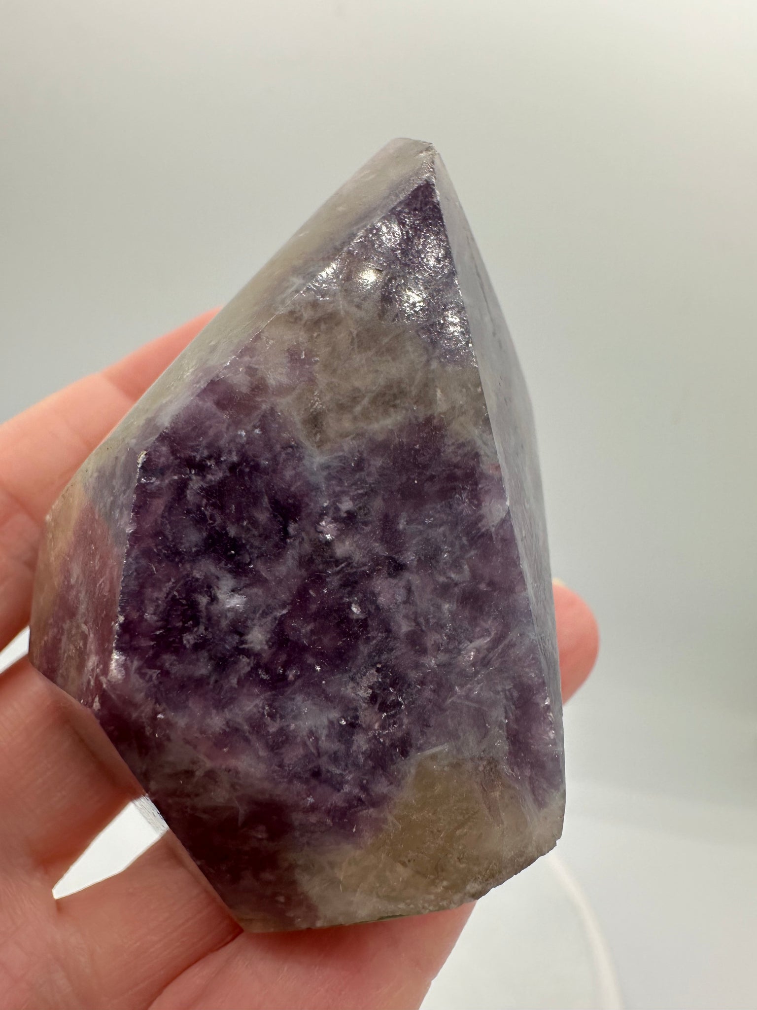 • Subtle mica shimmer from lepidolite