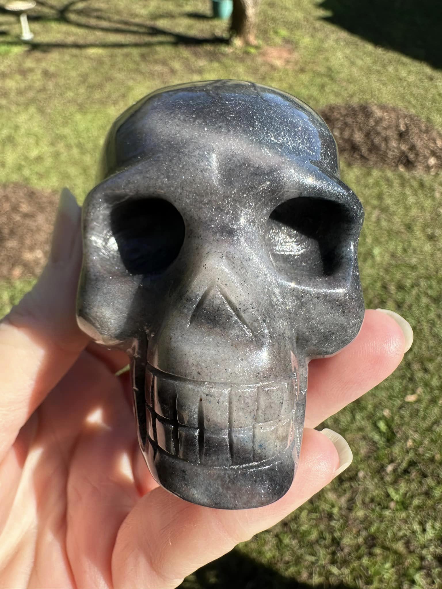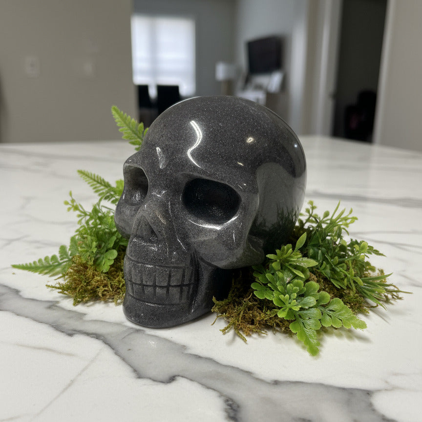 The Unique Trolleite Skull #5 is a finely crafted mineral specimen, carved from authentic trolleite. This piece combines natural mineral rarity with skilled artistry, making it a valuable addition for collectors and mineral enthusiasts. Its intricate details and unique crystal formations provide both scientific interest and aesthetic appeal, perfect for display or study in any expert collection.