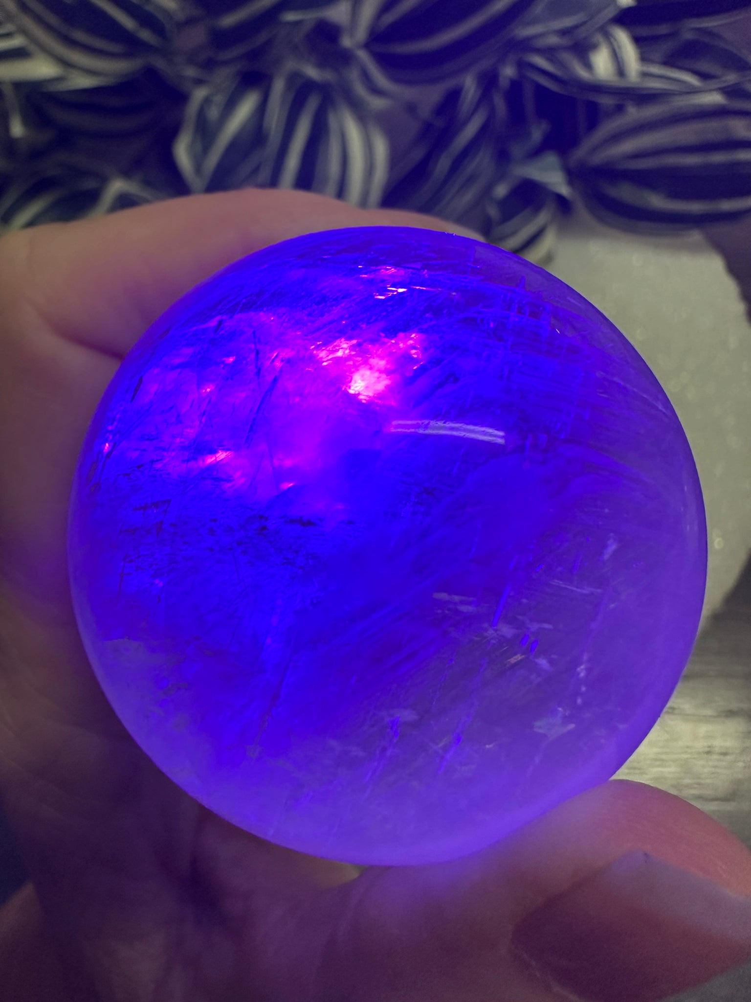 This White Calcite Rainbow Sphere has been carefully crafted and polished to perfection, making it an ideal decorative item for any room. This white calcite sphere contains stunning rainbow colors and is perfect for gathering positive energy.