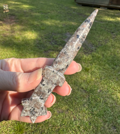Crafted with the rare and stunning Yooperlite, this carved knife is a collector's dream. Each knife is one-of-a-kind with its own unique pattern and colors. Bring the beauty and mystery of this rare stone to your collection. Stand not included.